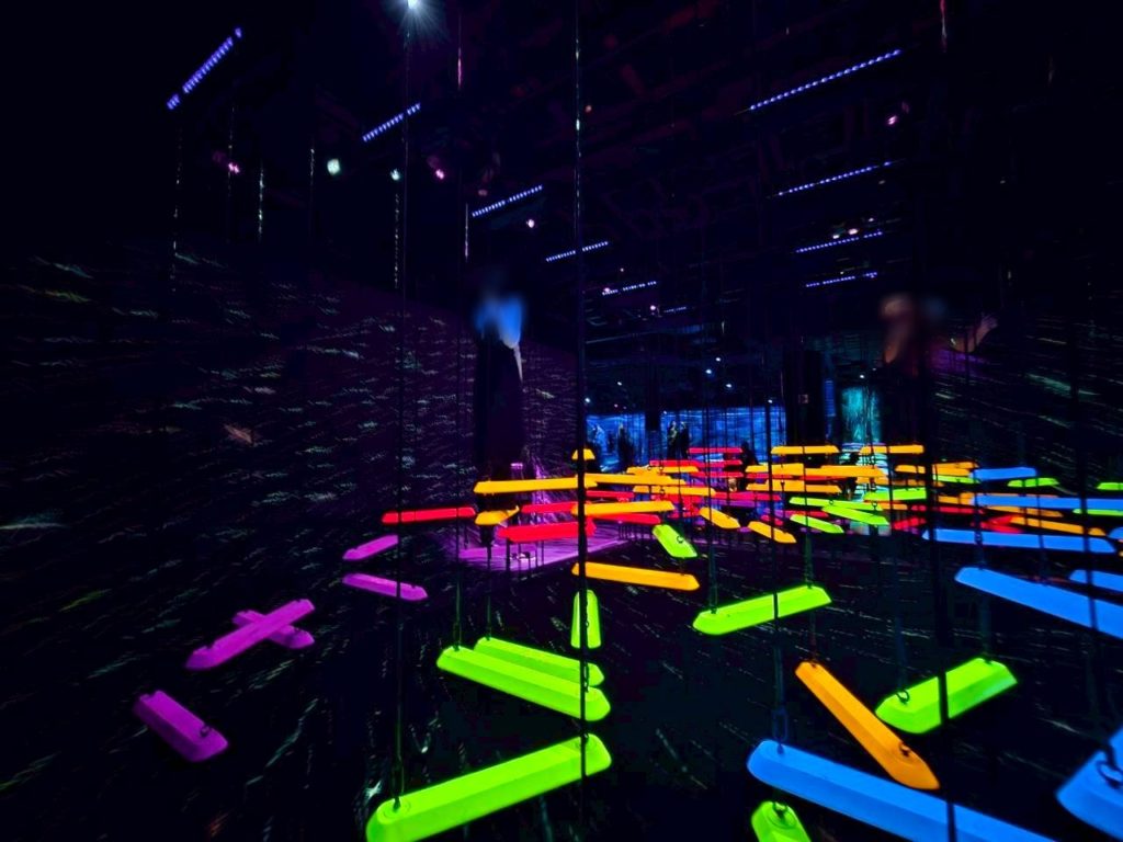 光る足場を渡っていくアスレチックのようなものがありました。